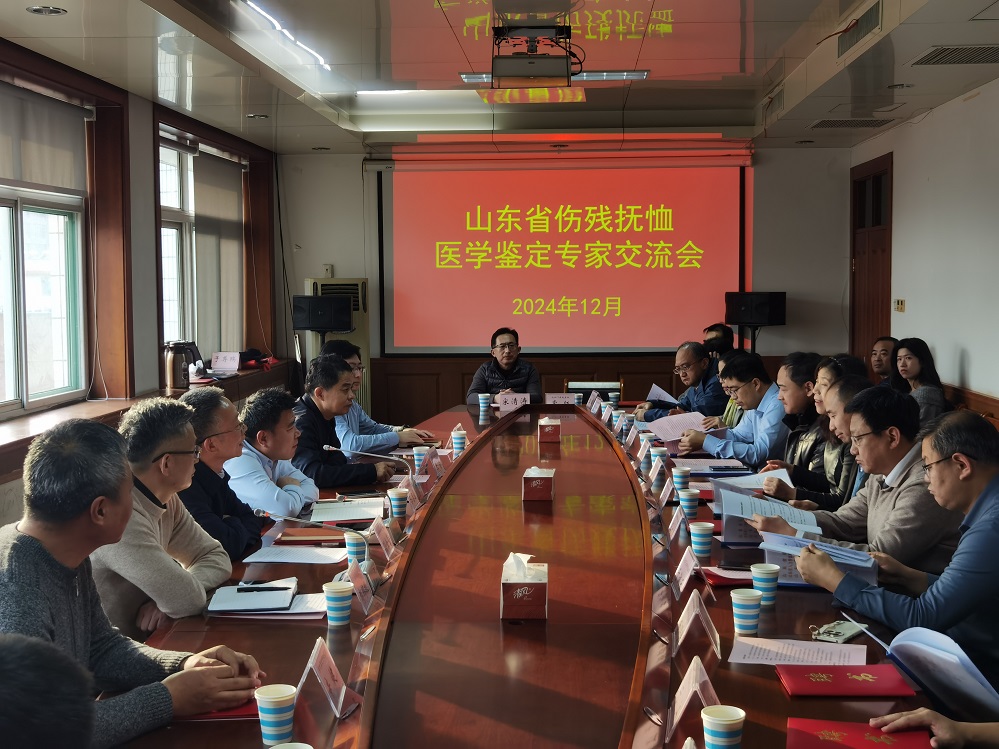 为进一步提高山东省伤残抚恤医学鉴定水平,提升鉴定公信力,加强鉴定专家的培养和交流,2024年12月12日下午2点30分,山东省伤残抚恤医学鉴定专家交流会在山东省第一荣军优抚医院办公楼会议室召开,山东省退役军人事务厅优抚处处长陈志强、副处长张营、科长于尊瑞、医院党委书记 院长孙士营、副院长郝鹏程,山东省第一荣军优抚医院、九六〇医院、省武警总队医院部分鉴定专家,新加入专家团队的社会医院部分鉴定专家参加会议交流。
